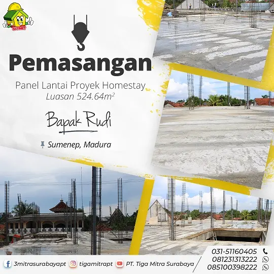 Halo para kontraktor, pemborong, dan pemilik rumah di Surabaya dan sekitarnya! Apakah Anda sedang mencari solusi terbaik untuk membuat bangunan Anda lebih kuat dan kokoh? Jika ya, Anda berada di tempat yang tepat! Kami dari PT Tiga Mitracon Indonesia dengan bangga memperkenalkan Galeri Panel Lantai kami, yang tidak hanya menawarkan kualitas terbaik tetapi juga pemasangan profesional untuk memastikan bangunan Anda sempurna dari dasar hingga atap.